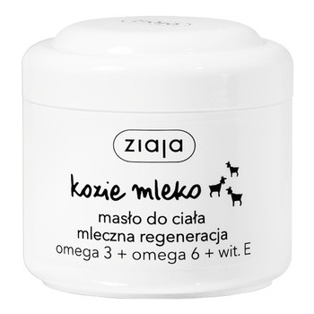 Masło do ciała mleczna regeneracja Ziaja Kozie Mleko jest produktem kosmetycznym, którego receptura opiera się w 95% na komponentach naturalnego pochodzenia. Kompozycję produktu wzbogacono o kompleks składników koziego mleka, olej oliwkowy oraz kwasy omega 3 i 6,