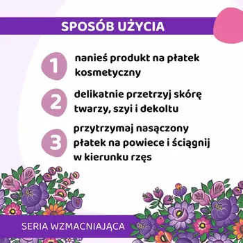 Nałożyć tonik na wacik kosmetyczny, a następnie przetrzeć twarz, szyję i dekolt. W celu usunięcia makijażu z oczu należy przytrzymać nasączony wacik na zamkniętej powiece, a następnie ściągnąć zanieczyszczenia w kierunku rzęs.