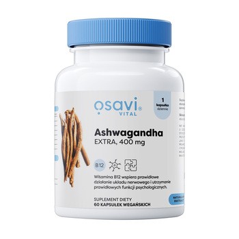 Osavi Ashwagandha Extra 400 mg - to suplement diety z standaryzowanym ekstraktem z korzenia ashwagandhy. Produkt przeznaczony dla osób dorosłych.
