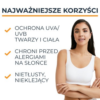 Żel-krem, ochronny, do twarzy i ciała – przeciwsłoneczny krem dla osób z wrażliwa skórą. Pomaga zapobiegać alergiom słonecznym takim jak polimorficzna osutka świetlna (PLE). Zapewnia ochronę przed promieniowaniem UVA/UVB orazprzed światłem HEVIS.