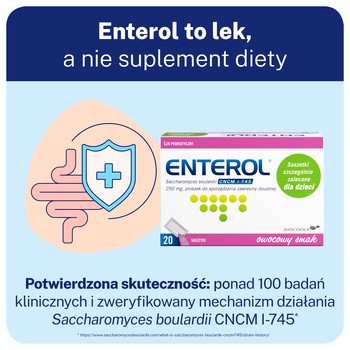Enterol, 250 mg, proszek do sporządzania roztworu doustnego, 20 saszetek
