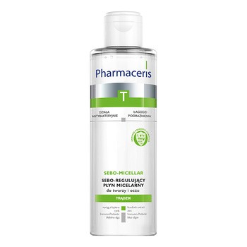 Pharmaceris T Sebo-Micellar to płyn micelarny przeznaczony do oczyszczania skóry twarzy, a także okolic oczu. Jego formuła pomaga dokładnie usuwać makijaż i wszelkie zanieczyszczenia oraz nadmiar sebum, redukować niedoskonałości i odblokowywać pory.