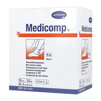 Kompres włóknisty jałowy Medicomp, 4 warstwowe, 7,5 cm x 7,5 cm, 50 szt.
